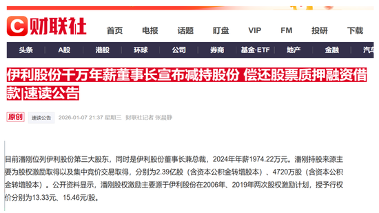 而截至公告披露日,潘刚持有伊利股份2.867亿股。